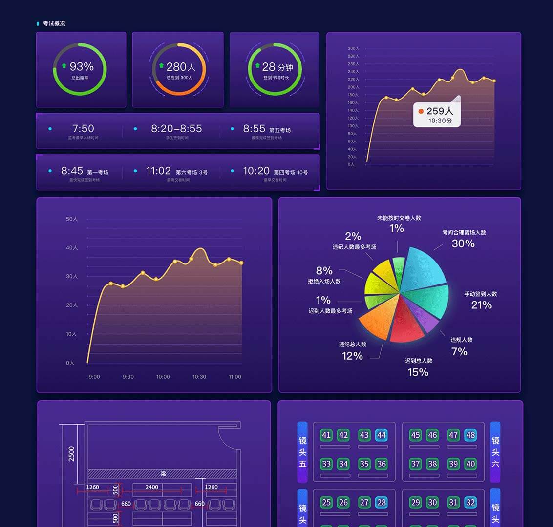 所有標記畫面和全過程同步推流至云端,廣泛適 用于各大考試和無人教室。解決人工管理的不穩(wěn) 定性,實現(xiàn)考務(wù)設(shè)備和考場服務(wù)的一體化。